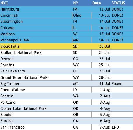 It were wonderful past couple of days. On the drive from Illinois to Wisconsin, as soon as I saw the board Welcome to Wisconsin, the landscape changed, it was more green, less traffic, lots of vegetation. Met a wonderful couple who were so different from what I imagined they would be like.. they were so full of life. Spent an evening with them and moved to Minnesota next day. Tonne of forests around. Ran into a birthday party in Minneapolis and old friends. And now on to the wild wild west.. South Dakota !